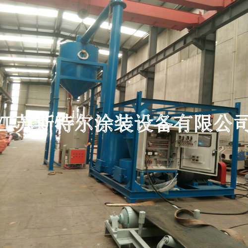 為連云港中復連眾復合材料設計制作的噴砂機、真空吸砂機整套設備交付使用 2014年4月,我公司和連云港中復連眾復合材料集團四虎在线免费视频-4虎最新网址-四虎精品视频-四虎久久久第一次合作,定制一套管道專用自動噴砂機,因使用效果滿意,于年底又為哈密中復連眾及貴陽中復連眾分別定制了一套管道專用自動噴砂機,自此,雙方公司成為了長期合作的生意伙伴~今年因生產需要,連云港中復連眾又在我公司采購了一套真空吸砂機,本設備是根據貴公司現有的條件及環境而專門設計的噴砂機回砂系統,利用真空吸砂的原理,將地面的砂料吸附到儲砂箱中,然后利用雙倉噴砂罐不停的工作原理,進行不間斷的噴砂作業。工件表面經高速丸料沖擊后,其表面的氧化皮、污物以及其他附著物迅速被清理干凈。本機采用真空回收磨料,配有分離器,風力主要作業延長除塵器濾芯的使用壽命;大顆粒物件從儲砂箱檢修口清理走。該整體噴砂吸砂裝置即可以滿足高效率噴砂處理,又可以實現氣力自動回收,為操作員工實現傻瓜式操作,一鍵式啟動噴砂及吸砂機工作。
